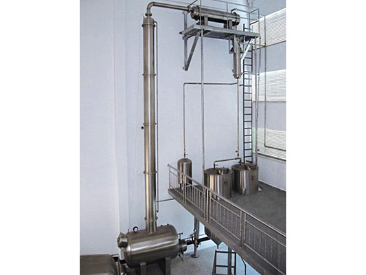 酒精回收塔利用酒精沸點低于不及其它溶液沸點的原理,用稍高于酒精沸點的溫度,將需回收的稀酒精溶液進行加熱揮發(fā),經(jīng)塔體精鎦后,析出純酒精氣體,提高酒精溶液的濃度,達到回收酒精的目的。